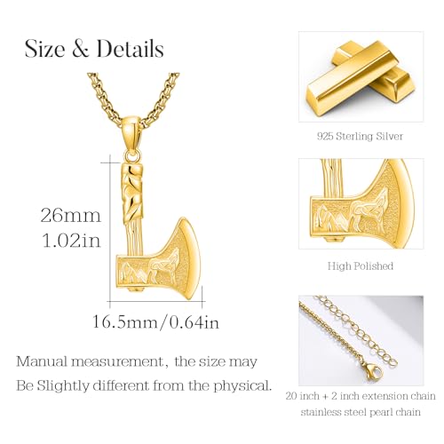 MEDWISE Viking Axe Pendant Necklace Celtic Wolf S925 Sterling Silver Celtic Norse Talisman Viking Rune Viking Jewelry Axe Warrior Hatchet Axe Amulet Necklace for Men Women 6