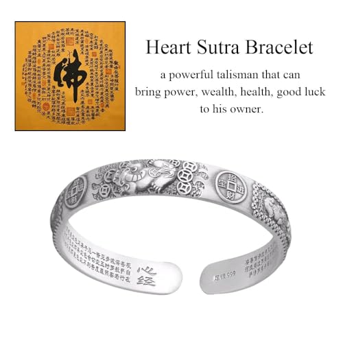 • FUSION OF PI XIU AND THE HEART SUTRA ELEMENTS: This Bracelet draws inspiration from the ancient Pi xiu of Chinese legend, exuding a timeless vintage charm. The inner band is engraved with the complete Heart Sutra, beautifully blending the Pi xiu with this sacred mantra. This Bracelet is designed to bring prosperity and good fortune to you, your family, or your workplace, helping to attract wealth and blessings.