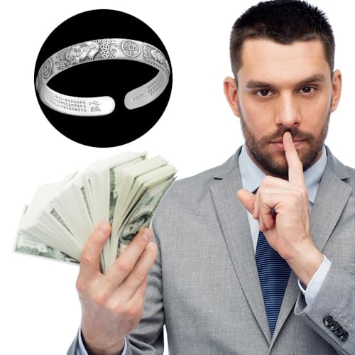 Feng Shui Pi Xiu Bracelet for Lucky and Evil, Vintage S999 Pure Silver Buddhist Amulet Bangle, Tibetan Buddhism Good Luck Wealth Auspicious Meditation Bracelets Cuff 4