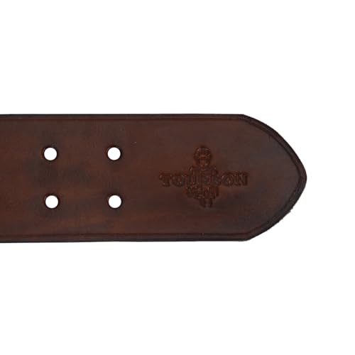 More information about TOURBON Vintage Brown Leather Belt 32-47 inch for Men, 2 inch Wide Work Waist Belt with Double Prong