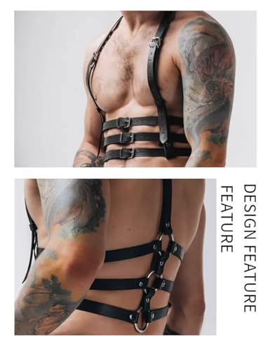 Fstrend Men's Chest Harness Faux Leather Shoulder Strap Belt Black Fashion Rave Body Accessory 5
