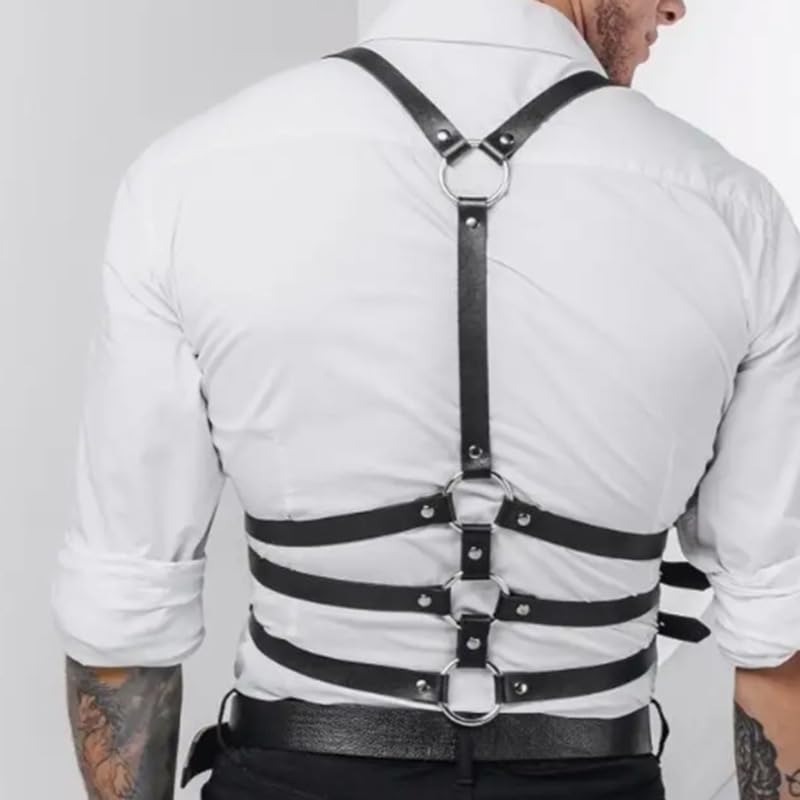 Fstrend Men's Chest Harness Faux Leather Shoulder Strap Belt Black Fashion Rave Body Accessory 7