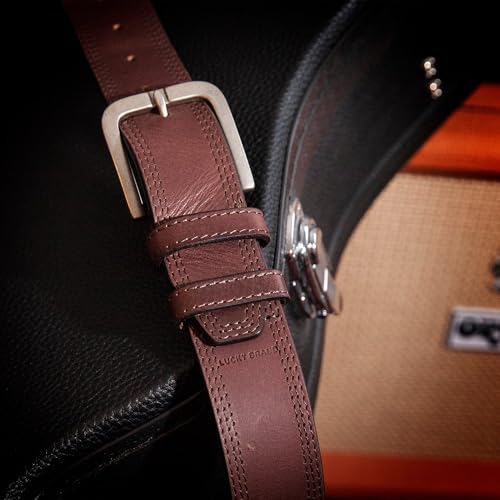 Lucky Brand Men's Stitched Leather Belt | Classic | Casual | Dress | Everyday | Western | Genuine Leather | Metal Buckle 1