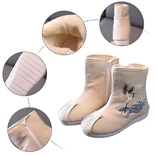 HOT ! Boys Cloth Shoes Children Embroidered Shoes Boys Hanfu Shoes Boots Chinese New Year Shoes (Beige, 9-9.5 Years Big Kids)