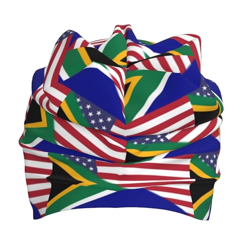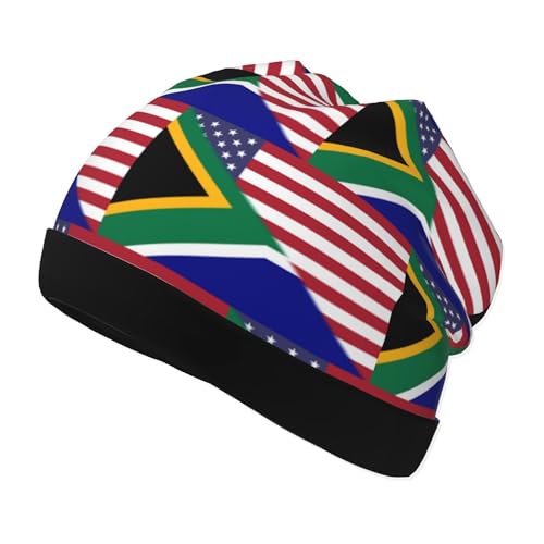 American Flag and South African Flag Kids Leisure Elastic Knitted Hat Junior Large Size Knit Cap Child Beanie Black 1