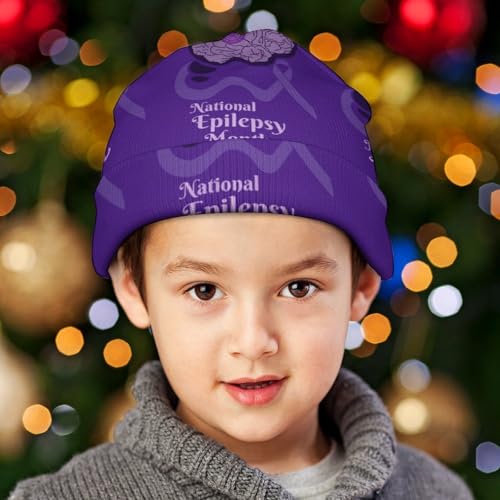 November is National Epilepsy Awareness Month Kids Beanie Hat for for Girls Boys Children Cap Winter Knitted Chemo Cancer Headwear Accessories Gifts Decoration Black 7