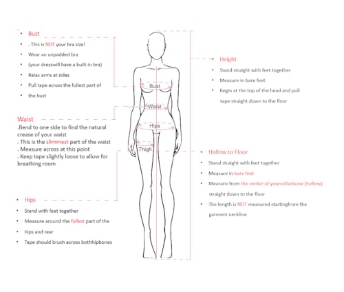 • Free Customization:For an ideal fit, please choose the size closest to your actual size. Then, kindly send us your bust, waist, hip, and height measurements via email. We offer this custom fitting service without any extra cost or delay.