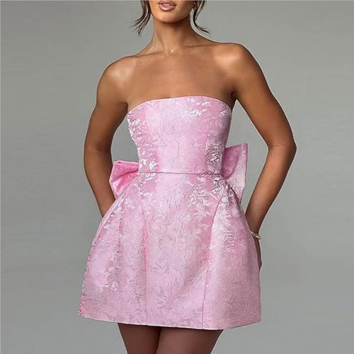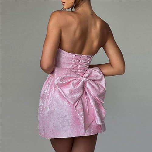 HOT ! BNGD Women's Solid Color Bustier Backless Bow Dress Sexy Jacquard Strappy Mini Skirt