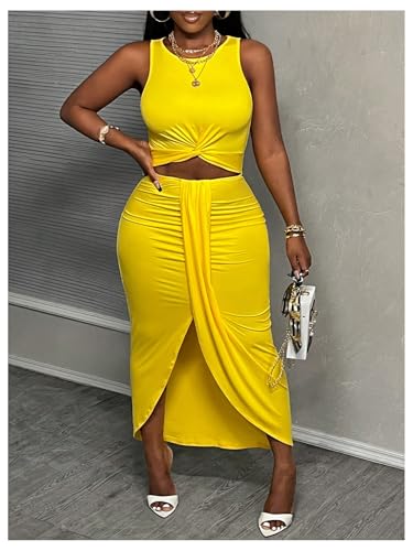 HOT ! SweatyRocks Women's Twist Cut Out Dress Sleeveless Ruched Crew Neck Bodycon Maxi Dresses