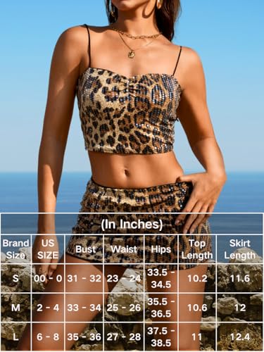 More information about Cheetah Print Skirt Set, Sparkly Sequin Mini Dress, Going Out Outfits, Sexy Club for Women Animal Glitter 2 Piece