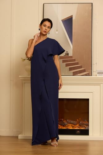 Chiffon One Shoulder Mother of The Bride Pant Suits for Women Flowy Wedding Guest Party Formal Outfit 5