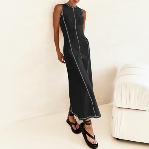 More information about Women's Summer Sleeveless T Shirt Dress Contrast Stitch Ribbed Knit Tank Maxi Dresses Casual Beach Long Midi Dress