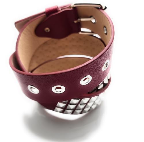Silver on Dark Red Studded Belt Trim-to-Fit 5