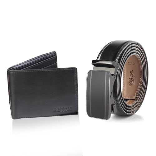 • [UNIQUE LEATHER BELT GIFT]: Help your man to upgrade his style, to chic and suave, with the Roxoni men's genuine leather belt and wallet gift. The rachet dress belt is sure to complement your every style, uplift your elegance, and make you stand out in a crowd.