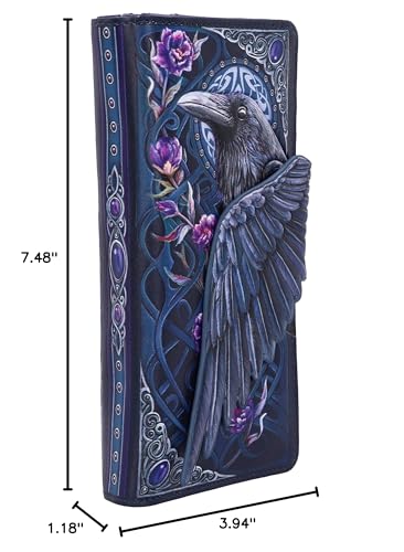 HOT ! Nemesis Now Ravens Flight Black Wing Floral Embossed Purse, Hand-Painted Gothic Wallet, Folklore-Inspired Design, Multiple Card Slots, 18.5cm