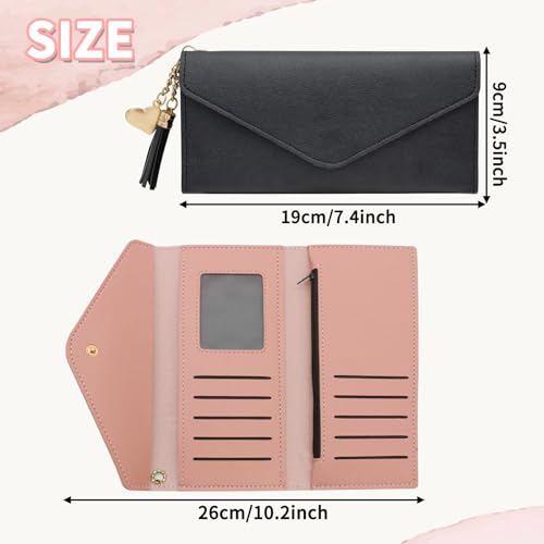 Trifold Wallet for Women, Long Slim Women’s Wallet Clutch with Heart Pendant Tassel, PU Leather Women's Wallets Card Holder, Coin Slot (Black) 5
