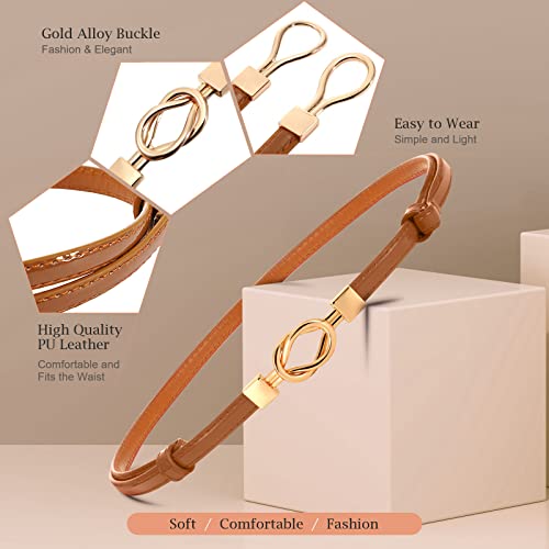 Chuarry 6 Packs Women Skinny Leather Belt Slim Adjustable Waistband Thin Women's Dress Belt Vintage Waist Belts for Ladies, 0.4 Inches Wide 5
