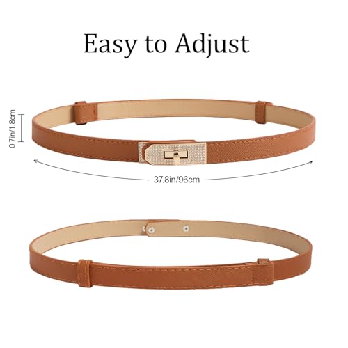 Women Skinny Leather Belt with Rhinestone Turn-Lock Buckle, Adjustable Thin Waist Belts for Dresses, Jeans, Coats (Brown) 7