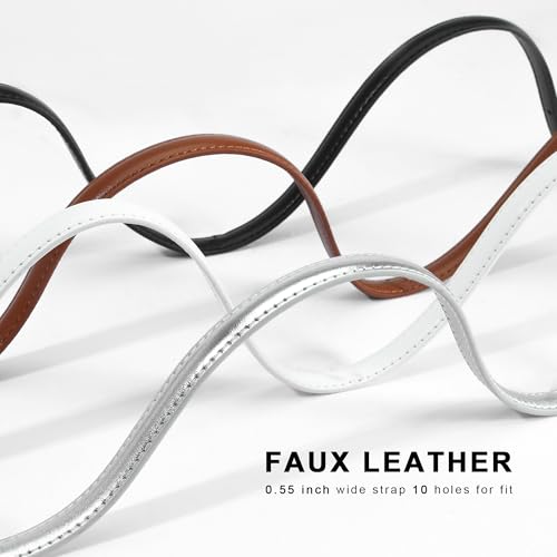 Women Skinny Belts for Jeans Dress Thin Waist Faux Leather Belt with Gold Buckle 0.55" Width 4