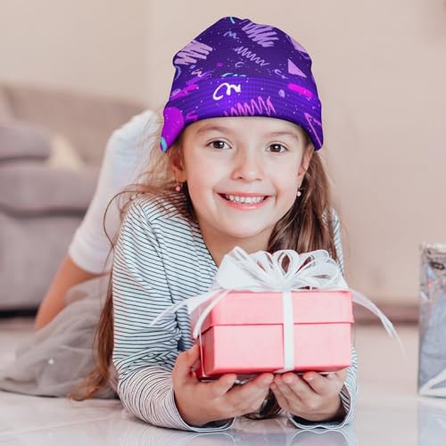 Retro 80s 90s Kids Beanie Hat for for Girls Boys Children Cap Winter Knitted Chemo Cancer Headwear Accessories Gifts Decoration Black 7