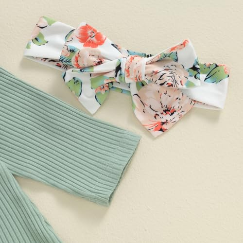 Madjtlqy Newborn Baby Girl Fall Winter Clothes Long Sleeve Ribbed Romper Top Bow Pants Headband Hat Set Coming Home Outfits 2