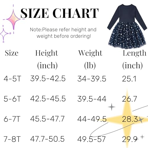 • Size: Size 4-8 years old, please choose the size for this toddler fall dress according to the size chart details in the product description.