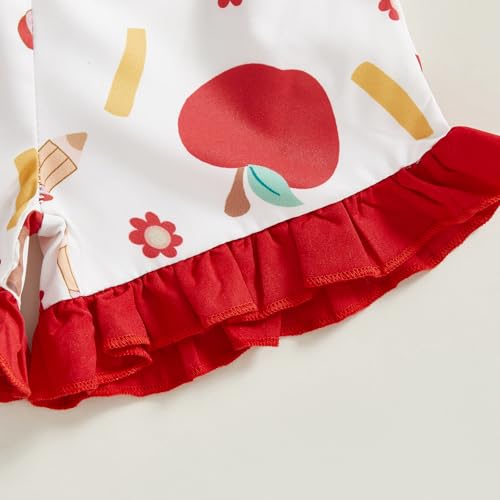 Toddler Baby Girl Back To School Outfit Apple Short Sleeve Shirt Top Ruffled Shorts Set Cute Girls Summer Clothes 4