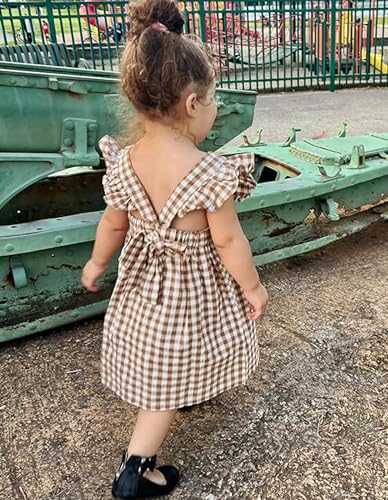 Toddler Baby Girls Gingham Dress Ruffle Sleeve Backless Plaid Dresses Holiday Casual Spring Summer Dress Size 6M-6T 5
