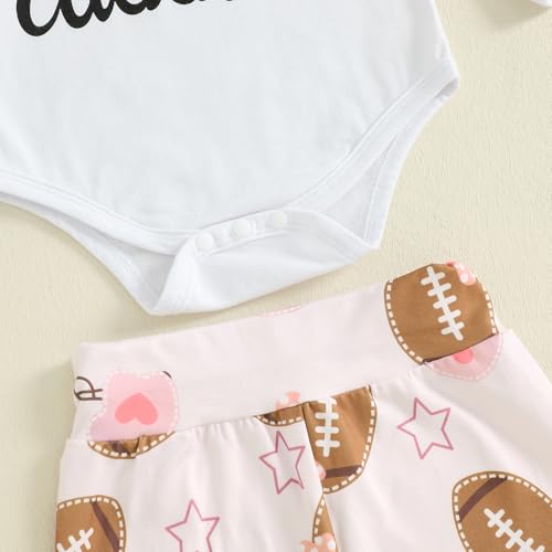 Newborn Baby Girl Football Outfit Huddles and Cuddles Long Sleeve Romper Flare Pants Headband Set 3Pcs Cute Fall Clothes 6