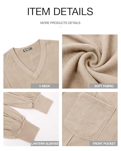 More information about BTFBM Womens Fall Fashion 2025 Long Sleeve Shirts Casual V Neck Ribbed Knit Blouses Pullover Trendy Loose Fit Tunic Tops