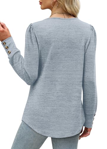 WIHOLL Long Sleeve Shirts for Women Buttons Cuff Tunic Tops Casual Fall Lightweight Sweaters Fashion 2025 5