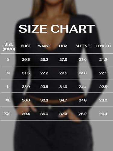 • Deep V Design: This sexy long sleeve deep v crop top can help you showing your body perfectly, it will effortlessly take your look up a notch with your charming cleavage and make you shining, confident.