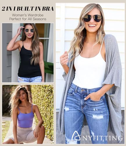 Womens Tank Tops Adjustable Strap Camisole with Built in Padded Bra Vest Sleeveless Layer Top 1/2/3 Packs 2