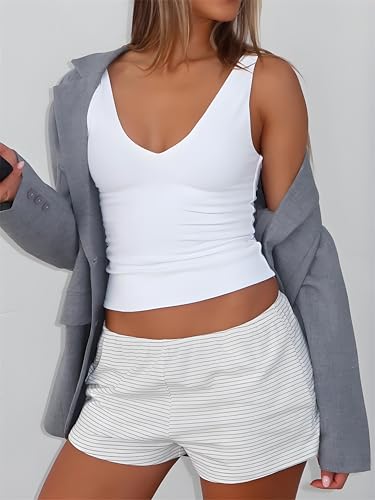 ForeFair Womens V Neck Sleeveless Backless Tank Top Slim Fit Going Out Crop Tops Double Layer Basic Casual Outfits 6