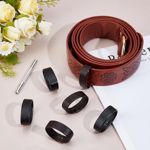 NICENEEDED 6 PCS Leather Loop Keeper with 1 Puncher, Replacement Cowhide Strap Holder Retainer Band, Hold Extra Length Straps Belt Accessories for 1.5"-1.6" Wide 5
