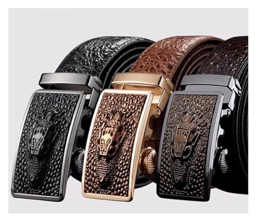 Mens Belts,Fashion Belt Men Cowhide Animal Head 3d Automatic Alloy Buckle Luxury Belts Adjustable 3