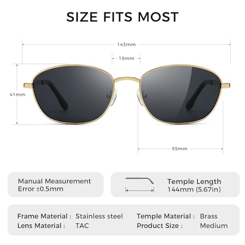 SUNGAIT Retro Square Rectangle Polarized Sunglasses for Womens Mens Metal Frame UV400 Protection 1