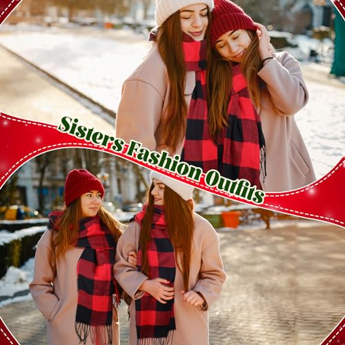 Cuffbow Christmas Santa Hat and Scarf Set Red Black Buffalo Plaid Scarf Santa Hat for Christmas Winter Party Gift 4