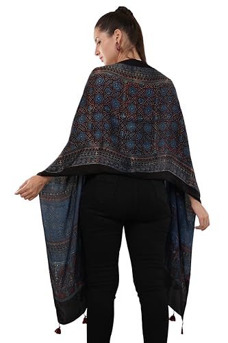 • DESIGN- Make a style statement with our exclusive hand block-print, natural dyed Modal silk Ajrakh stole/scarf with tassels. It can be used not only as a traditional scarf,poncho or shawl, but also as cozy stole. It can be used as a stole to keep shoulders warm, a head wrap to block out the light and look stylish at the same time. Great for cool evenings, chilly mornings and air-conditioned places. Cozy & perfect to wear to office, parties or festivals. Versatile for multiple weather conditions.