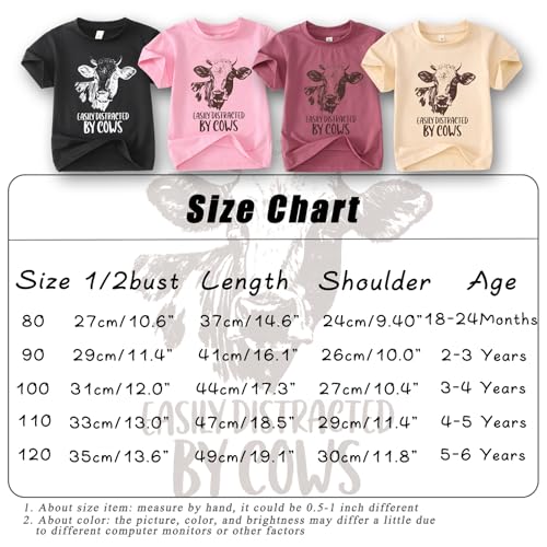 More information about Toddler Baby Boy Girl Farm Shirt Easily Distracted by Cows Animals Graphic T-Shirt Kid Funny Letter Summer Tee Tops