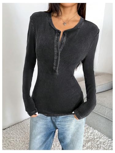 SOLY HUX Women's Long Sleeve Henley T Shirts Ribbed Knit Slim Fit Tee Casual Tops 1