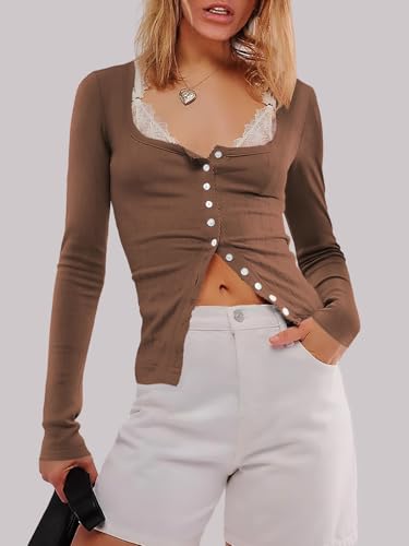 • Flattering Design: Designed with a scoop neckline, button-up front, and delicate lace trim, this shirt offers a touch of elegance to your feminine, sexy, casual look