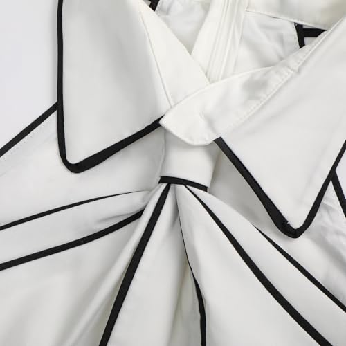 More information about Women's White Sleeveless Halter Neck Blouse with Contrast Trim,Elegant Dressy Top with Wide Collar,Tie for Work,Evening