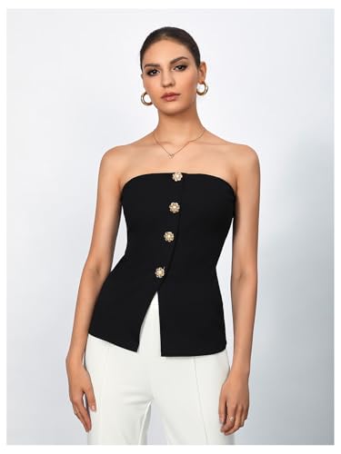 More information about OYOANGLE Summer Going Out Tops for Women 2025 Button Front Sleeveless Strapless Tube Top