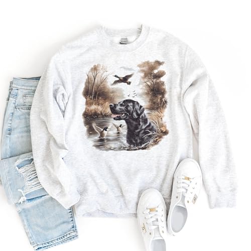 HOT ! Vintage Black Lab Hunting Dog Mallard Ducks Wilderness Scene Sweatshirt - 90s Vintage Duck Pond Sweatshirt - Scenic Cozy Fall Autumn Nature Sweater - Unisex Graphic Crewneck Sweatshirt