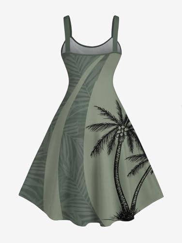 ROSE GAL Matchable Couple Hawaiian Coconut Tree Print Shirt or Plus Size Knee Length Fit and Flare Tank Dress 4