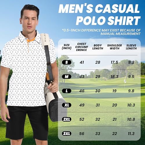 HOT ! Mens Golf Shirt Moisture Wicking Dry Fit Print Performance Short Sleeve Polo Shirts for Men
