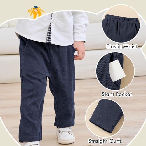 • Stylish Boys Pants: This 2-pack toddler boys chino pants is crafted from high-quality corduroy, stretchy fabric. Well-suited for both casual daily wear and more dressed-up moments like school uniforms or family outings