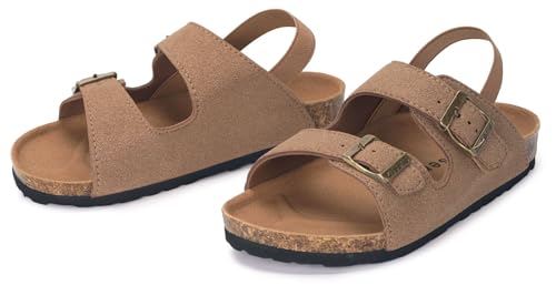 ZUSERIS Kids Toddler Sandals Boys Girls Cork Footbed Slides Summer Double Buckle Slippers Comfort Suede Leather Flat for Indoor Outdoor with Adjustable Straps 5