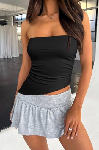 • Trendy Tube Tops: A Backless Design Adds A Touch of Allure, While the Ruched Detailing Creates A Flattering and Feminine Look. Unique Asymmetrical Hemline Adds Visual Interest and Modern Flair to the Overall Look, Creating A Stylish Statement Piece.